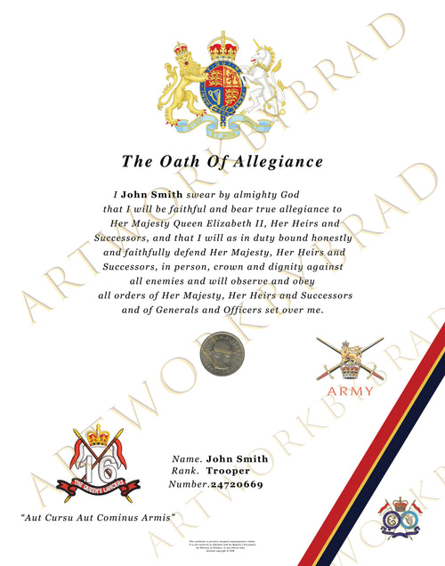 Royal Artillery Personalised Oath of Allegiance Certificate – British Army Gift